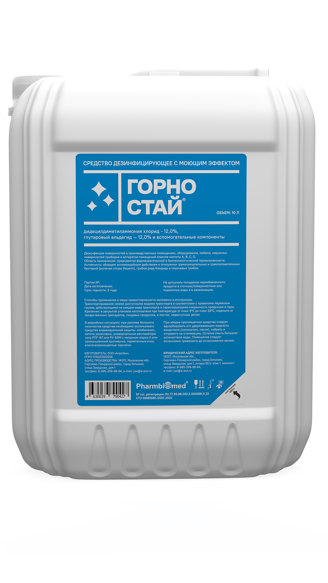 Дидецилдиметиламмония хлорид - 12,0%, глутаровый альдегид – 12,0% и вспомогательные компоненты.