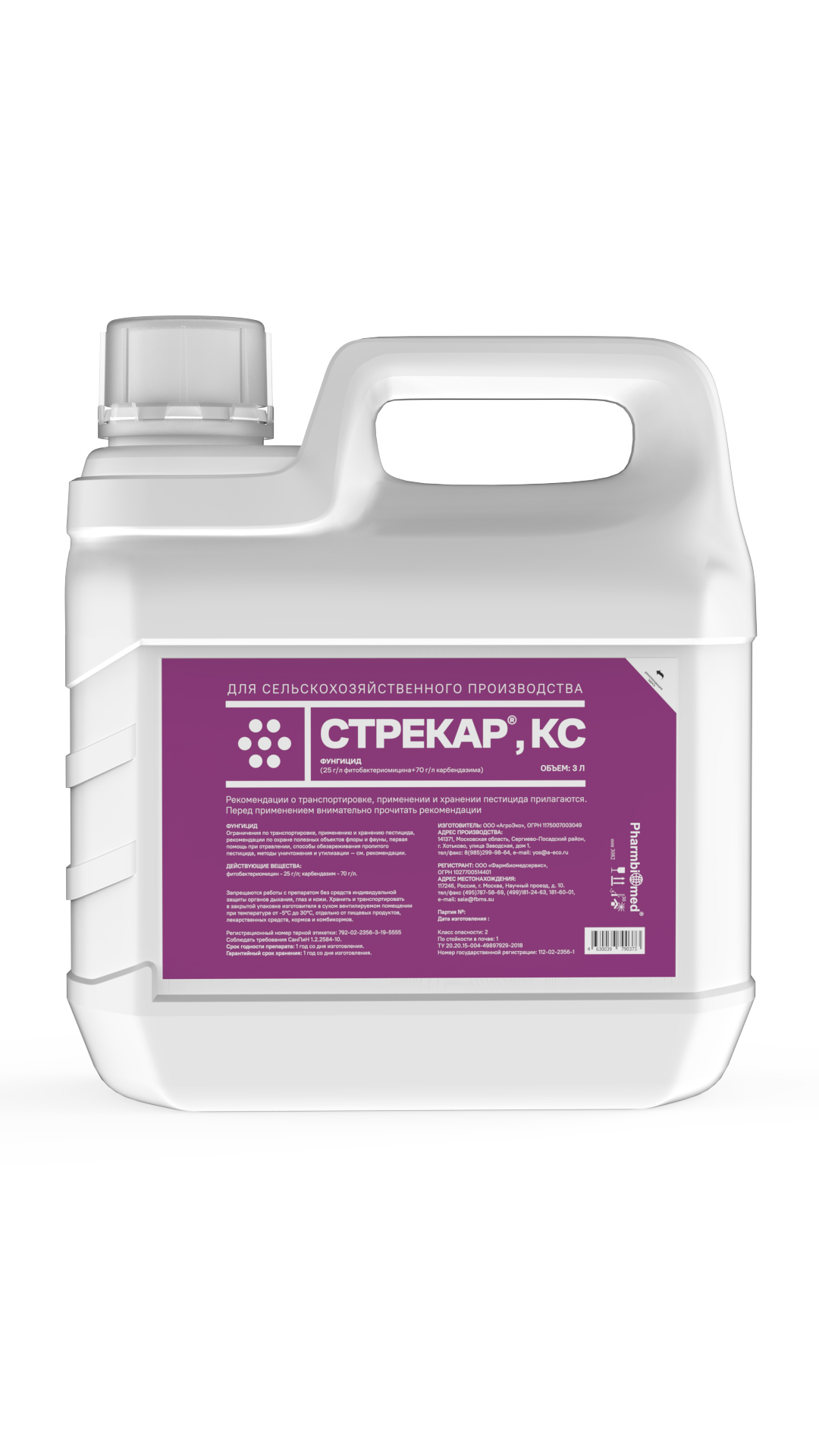 Фитобактериомицин – комплекс стрептотрициновых антибиотиков, 25 г/л (в расчете на сульфат стрептотрицинового комплекса), что соответствует 100 000 ЕА/г и карбендазим 70 г/л.